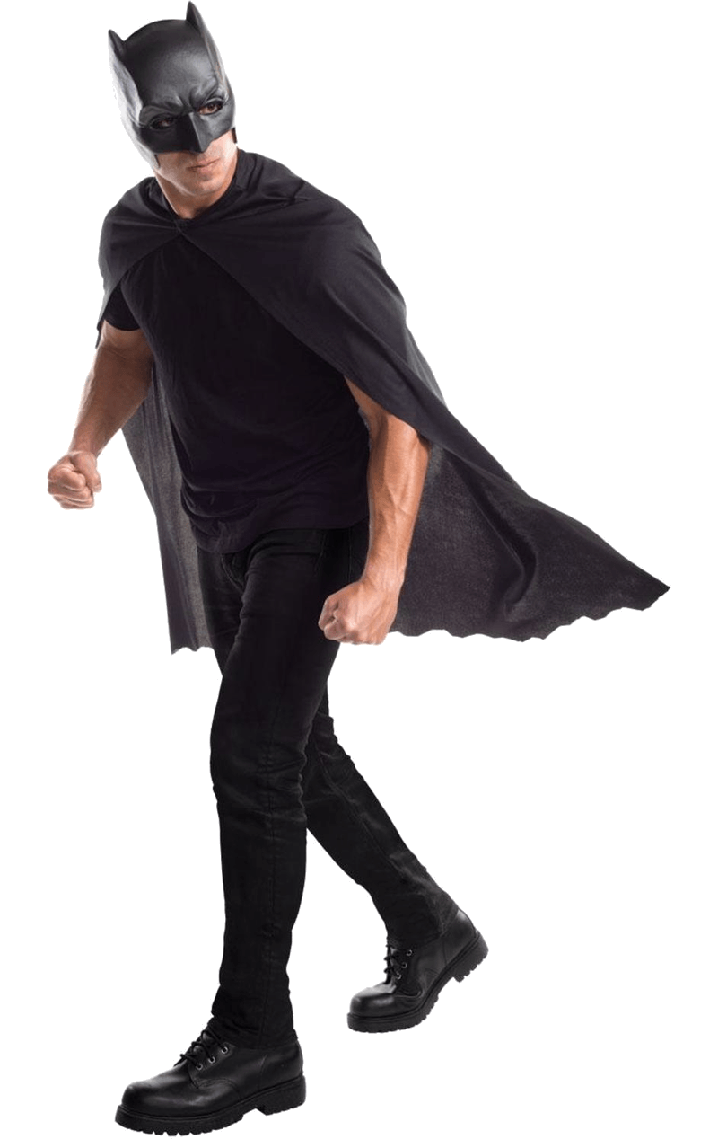 Complete your Caped Crusader look with our simple yet effective Adult Dawn of Justice Batman Facepiece and Cape. This is a perfect choice for anyone that doesn’t want to dress up in complete fancy dress but fancies adding a little superhero twist to their outfit.