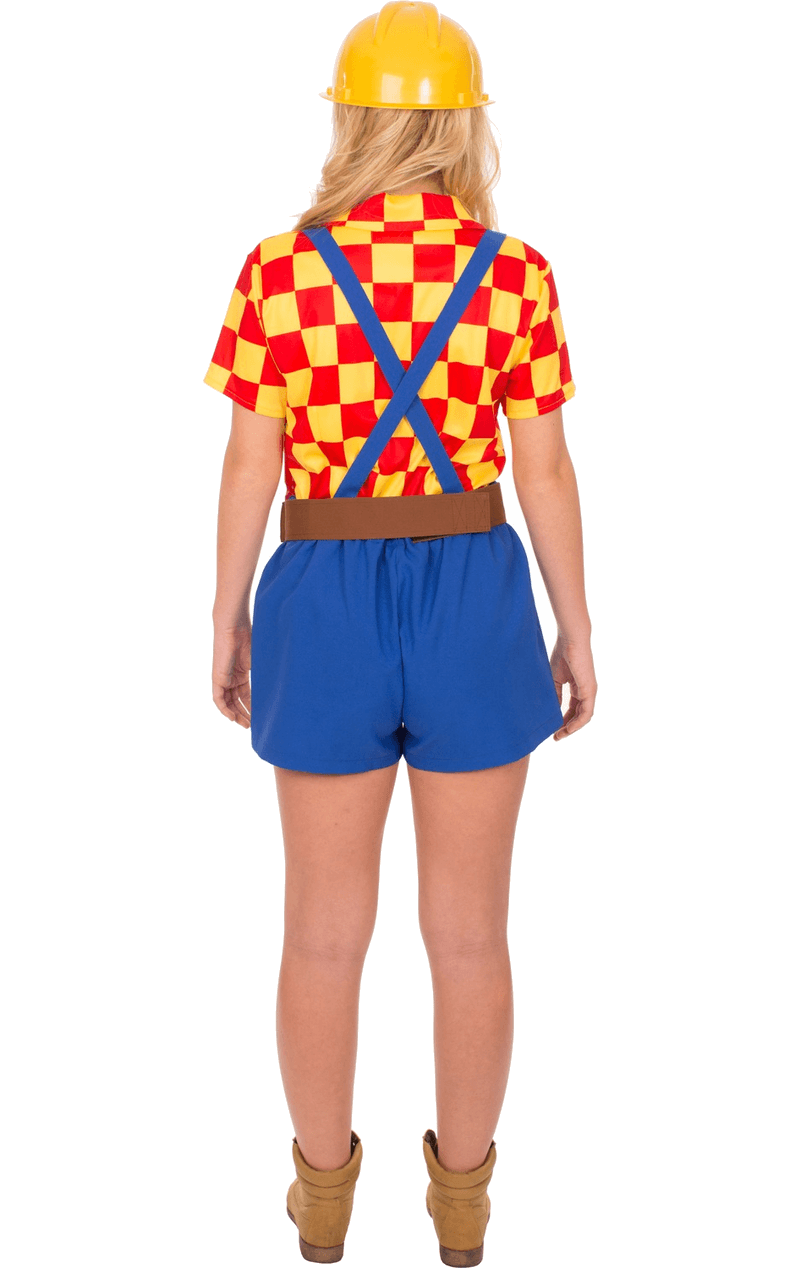 The Adult Female Bob The Builder Costume comes complete with a red and yellow checked top, plus a pair of electric blue shorts with straps. To complete the ultimate Mrs Builder look, the outfit also features a yellow hard hat, a brown tool belt that hangs on the waist, and of course, her tools. Â Because how else is she going to fix it?