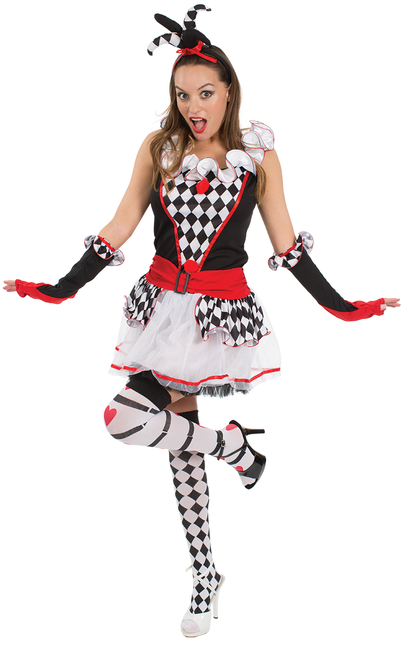 The Adult Harlequin Jester Fancy Dress Costume comes with an intricately designed dress that combined the boldness of a black and white check pattern with details in a bright red satin that really show off the attention to detail that’s been lavished on this beautiful outfit.