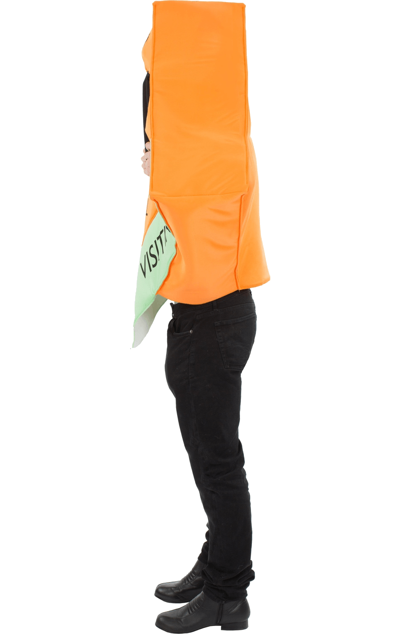 The words ‘IN JAIL’ and ‘JUST VISITING’ are printed on to the front of the novelty costume.