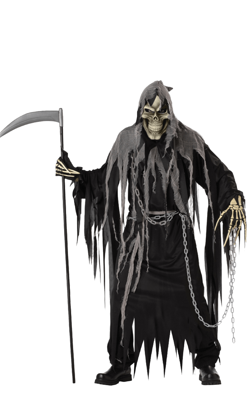 You know you’re in trouble when you get a visit from the Grim Reaper himself – and this one doesn’t look too friendly! With your skull face, cruel facepieceed grin and your skeletal hands, you’re sure to have people running away from you in fear. Complete your death-like look with a realistic scythe.