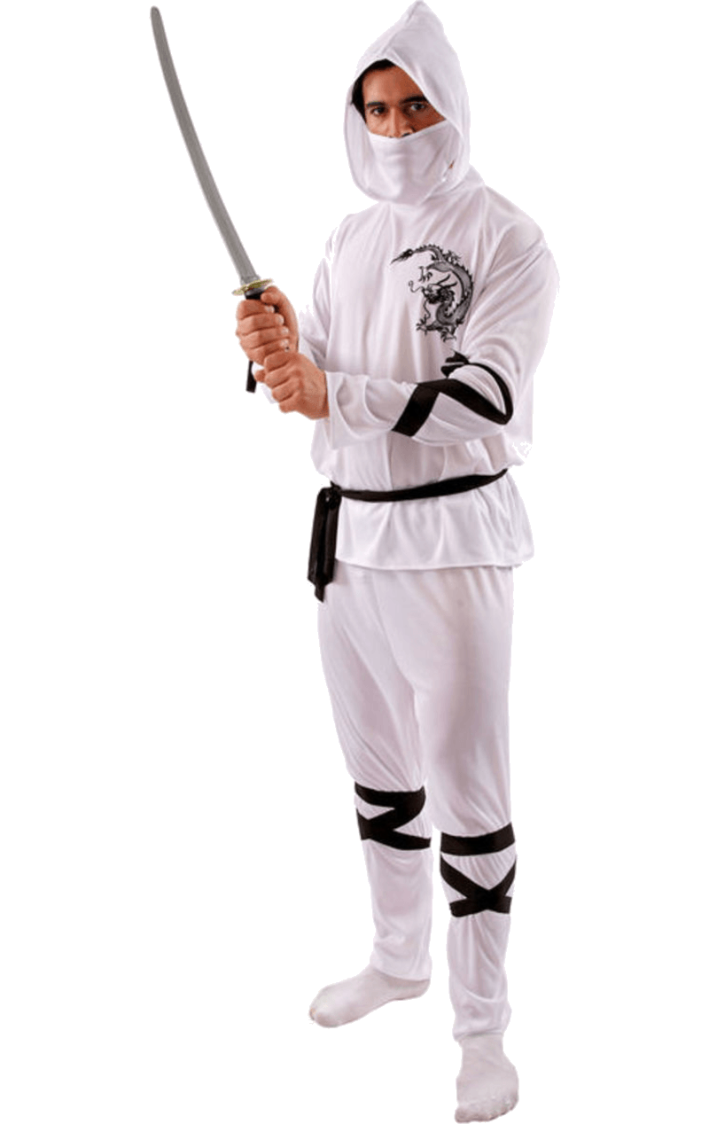 Our impressive Adult White Ninja Costume features an intricate dragon print, leg and arm ties and a facepiece for disguising your identity. It bears the classic style of a Japanese stealth ninja warrior, and there’ll be no question as to who you are.