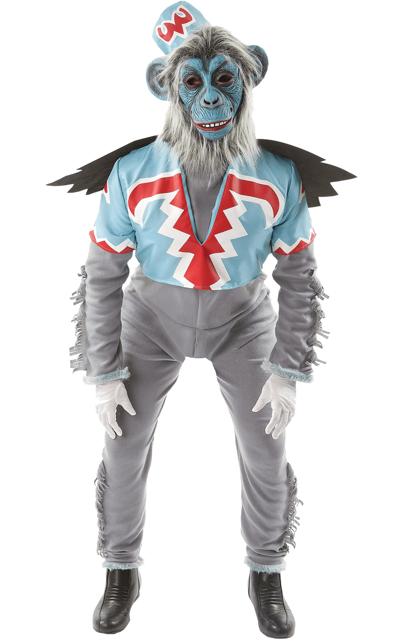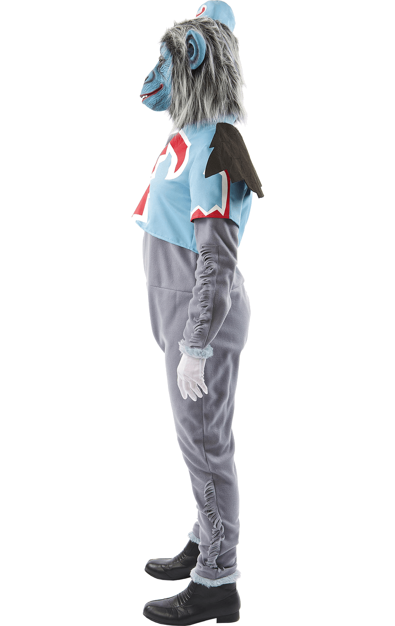 The Adult Flying Monkey Wizard of Oz Costume is made up of an all one on grey fleece jumpsuit with the pattered red, white and blue top, as seen in the movie. To complete the look is a set of detachable wings and an incredible face mask that features the monkey’s face and hair with attached hat. It contains intricate detailing to give you an extremely realistic look.