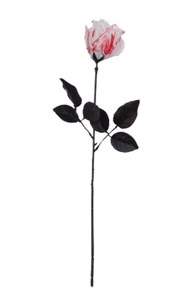 A bloody white rose adds a sinister and macabre touch to any back from the dead Halloween look. It completes perfectly tragic looks when held by zombie princesses and skeleton brides.