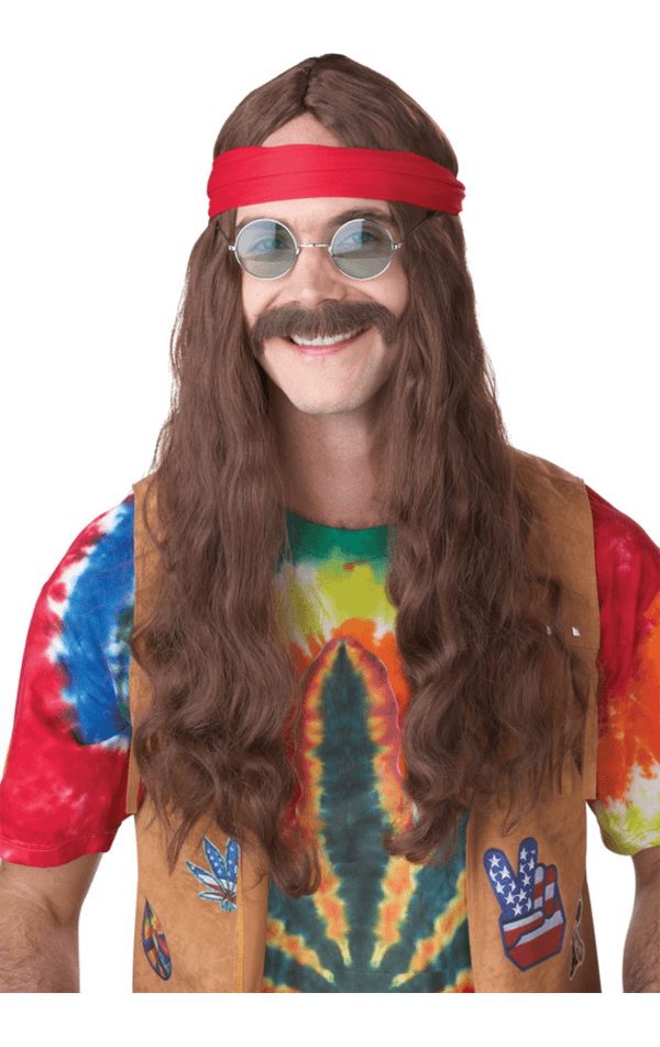 Create a groovy style with this totally far out Brown Hippie Man Wig and Moustache!