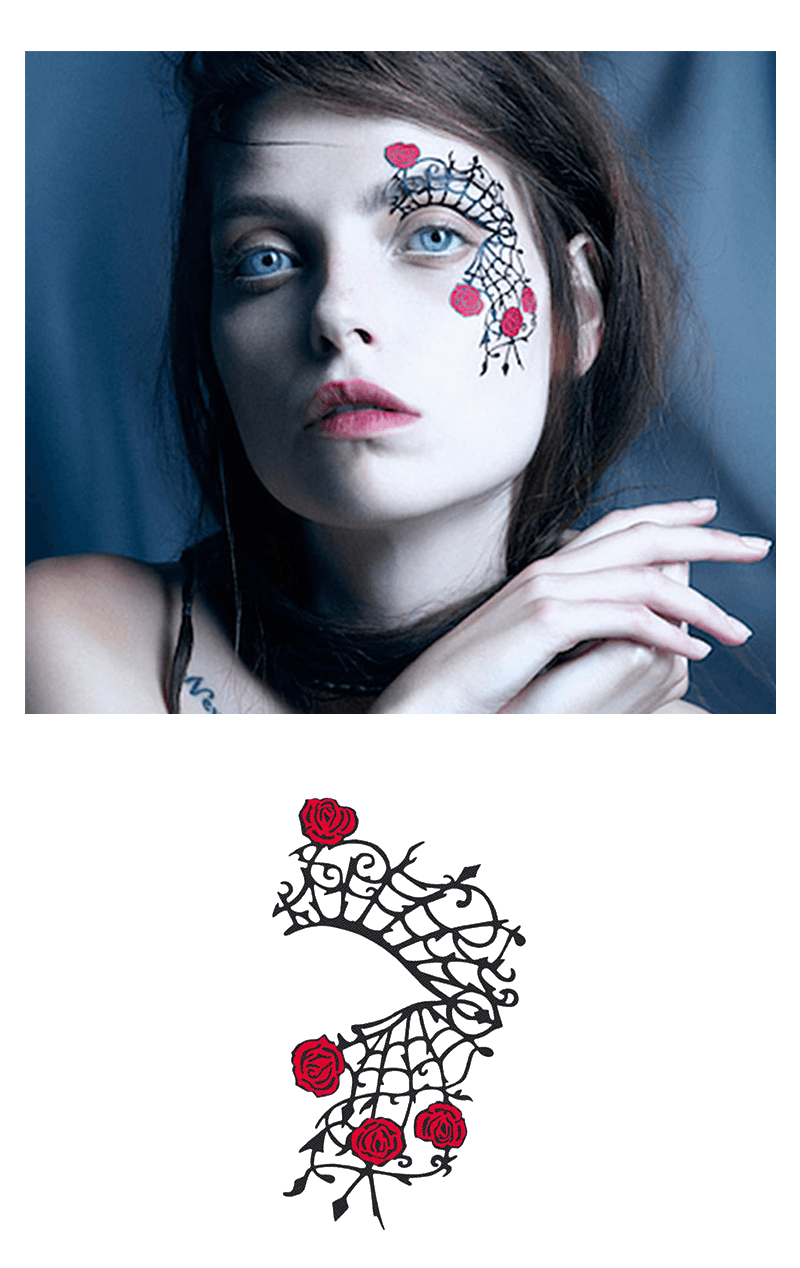 The Gothamour Face Lace design is inspired by nouveau roses and intricate spider webs. Easy to apply and remove, Face Lace is a perfect choice for precision makeup.
