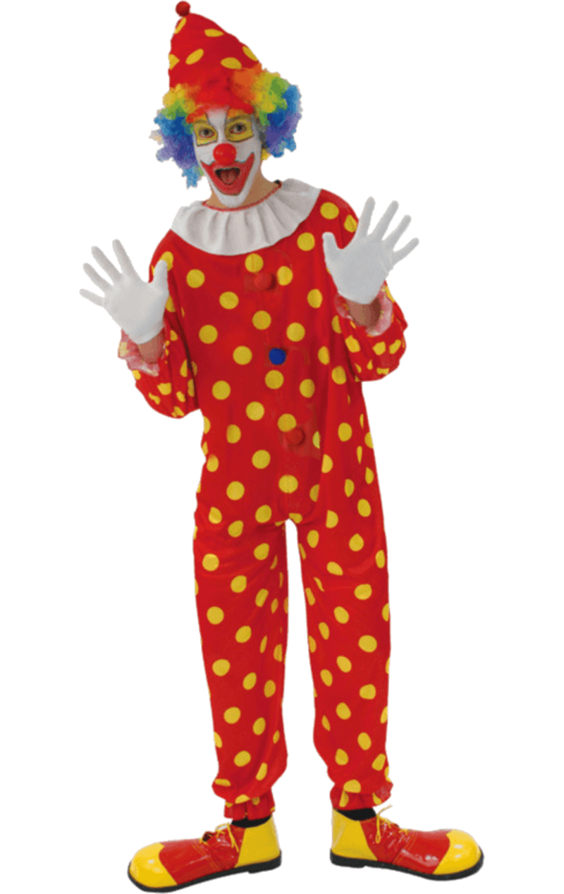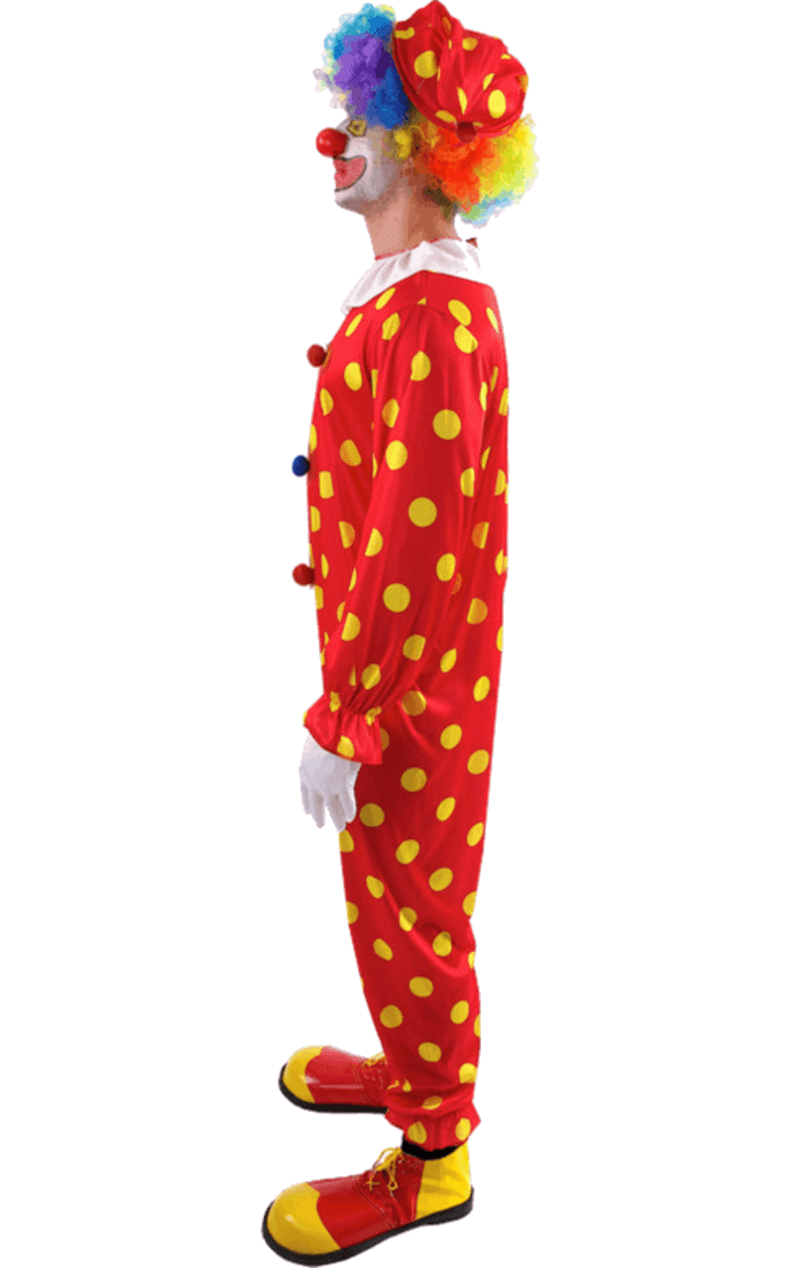 Whether it’s for a carnival, circus, or a clown appearance, this yellow-and-red polka dot clown jumpsuit, and matching hat will definitely get you noticed.