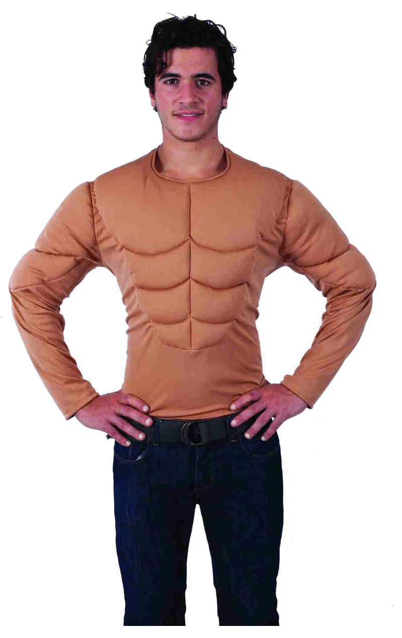 The skin-coloured long sleeve top has printed muscles on the arms and chest to give you a toned, muscular physique.