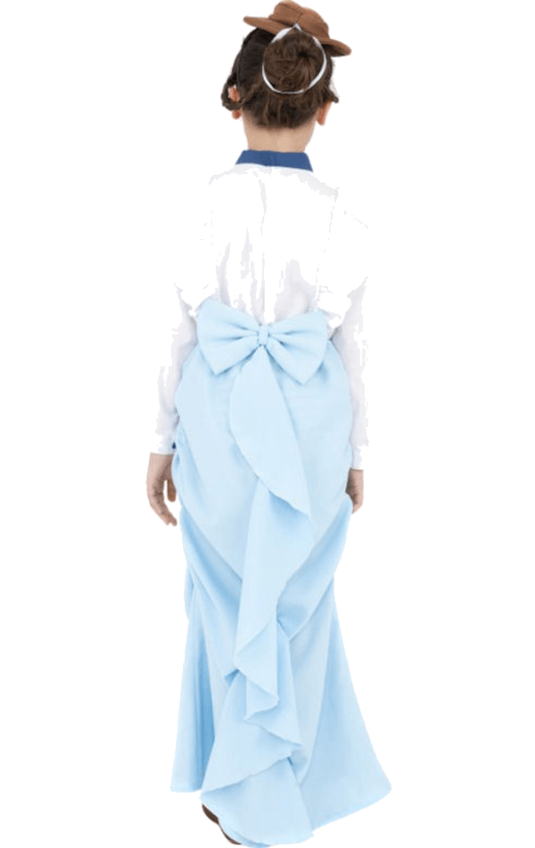 The Childrens Posh Victorian Girl Costume includes a long white and blue dress with an attached blue bow at the front and a light blue bow at the back. The dress is made from 100% polyester for a lightweight and breathable finish, perfect for an entertaining member of the upper classes.