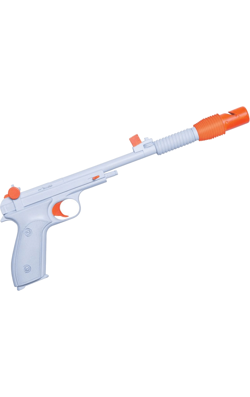 This officially licensed product features a white and orange plastic blaster gun. A replica of the one Princess Leia is see with in the blockbuster Star Wars saga films.