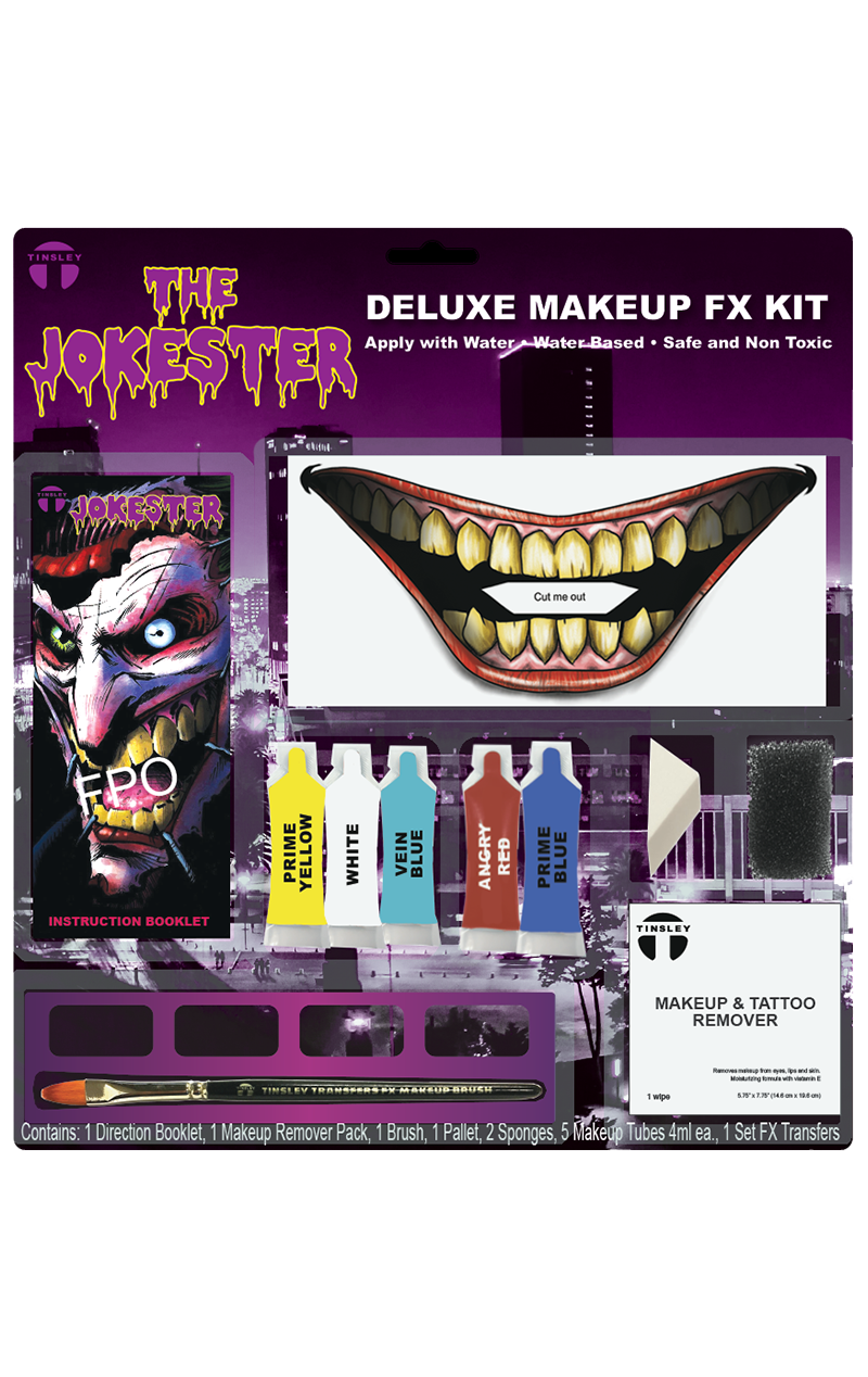 Become DC’s craziest villain with The Jokester FX Makeup Kit, giving you the most feared smile in all of Gotham with just one easy-to-apply tattoo.