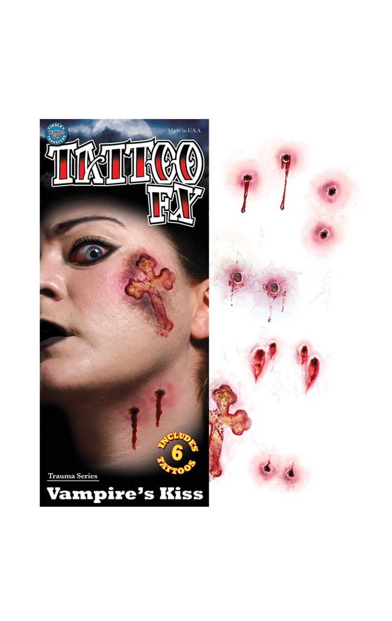 Have you been personally victimised by Dracula himself? Had a run in with Nosferatu? These Vampire Kiss Temporary Tatooos are a great makeup alternative this Halloween!