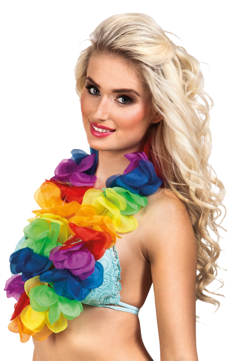 Decorate yourself with this vibrant X Large Rainbow Hawaiian Lei for a pop of colour.